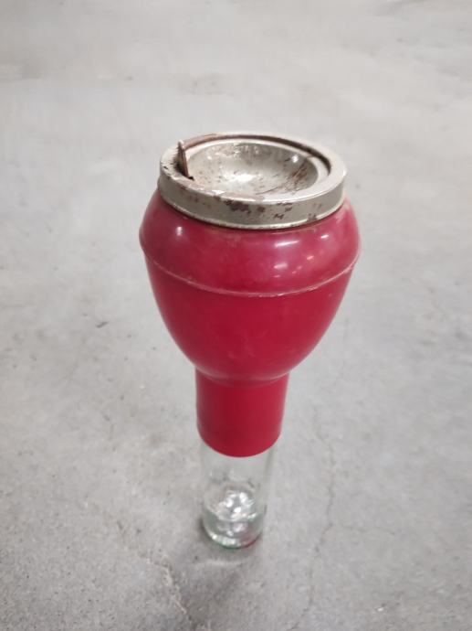 Retro pepeljara sa staklenom podnožjem iz 1970.-tih g. Materijal: plastika, metal, staklo.