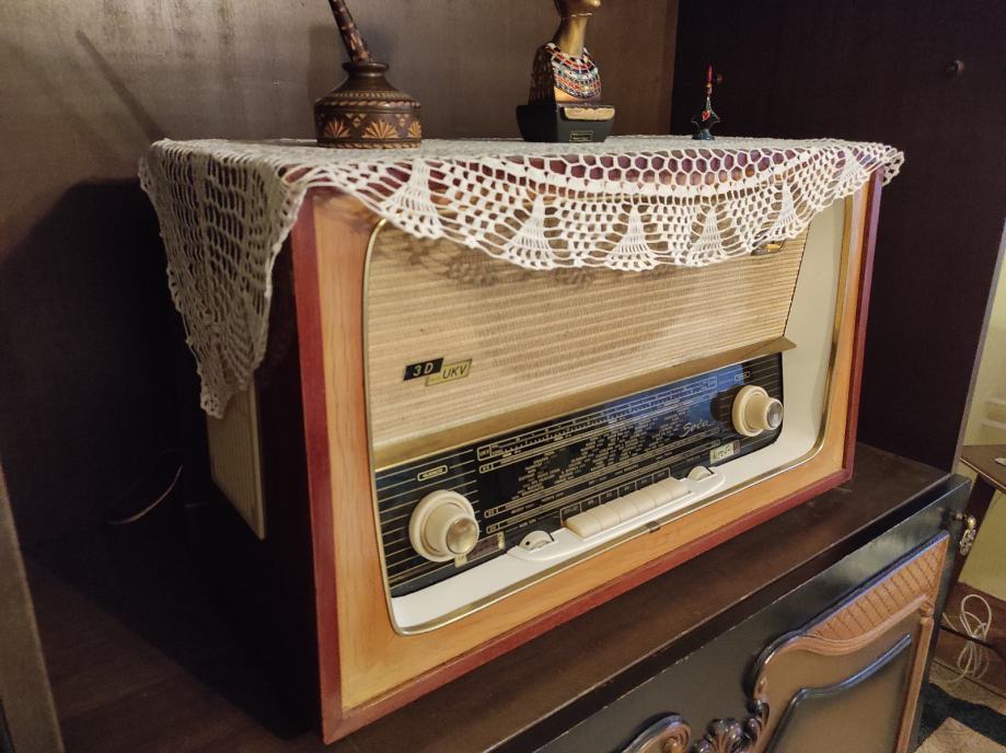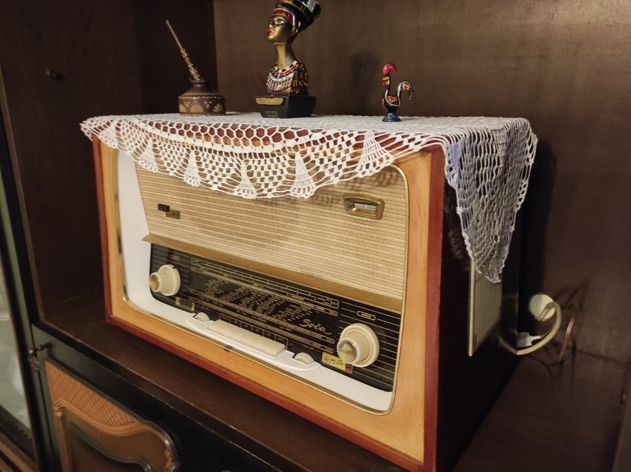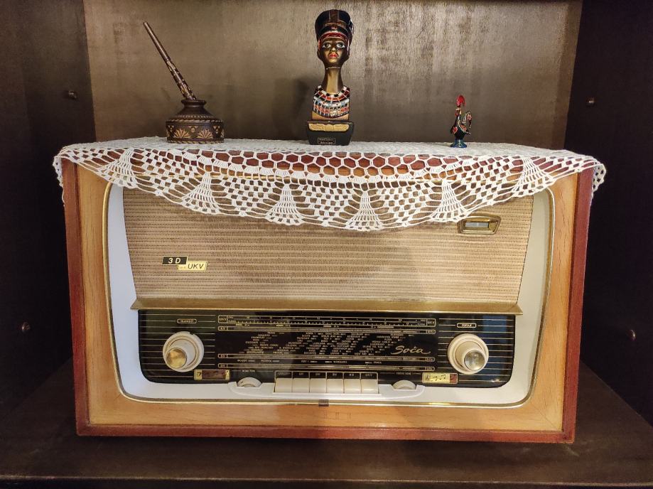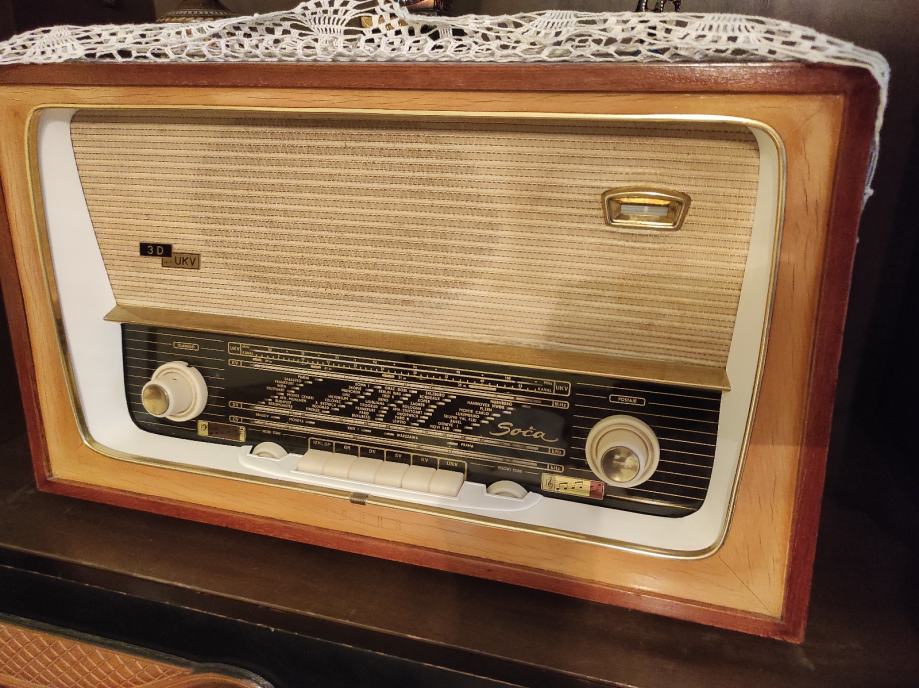 Starinski radio Iskra Soča iz 1960-ih. Prijemnik za dugi, srednji, kratki val i UKV. Ulaz za gramofon sa stražnje strane. Mogućnost podešavanja visokih i niskih tonova.