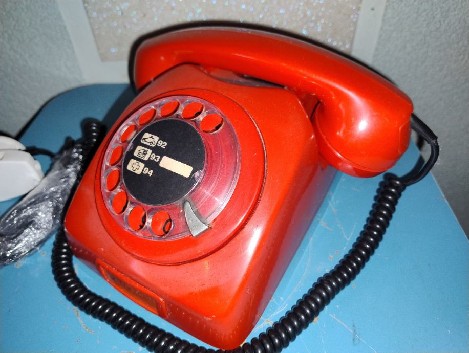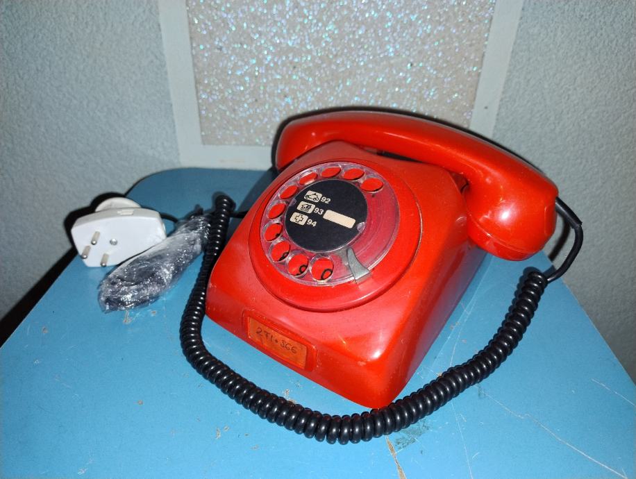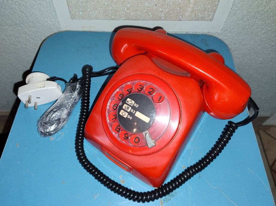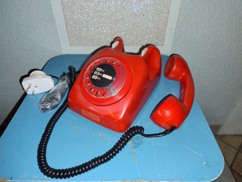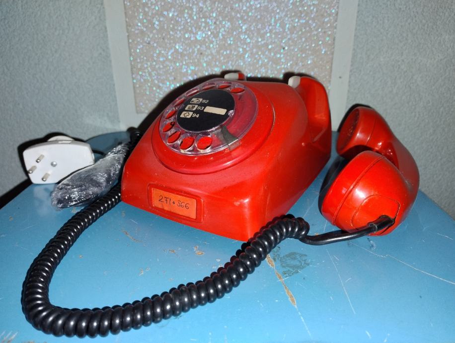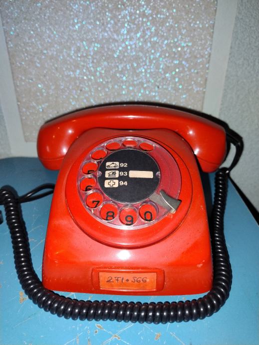 Retro telefon, plastika, crveni, proizvođač EI, Yu, model ATA80.