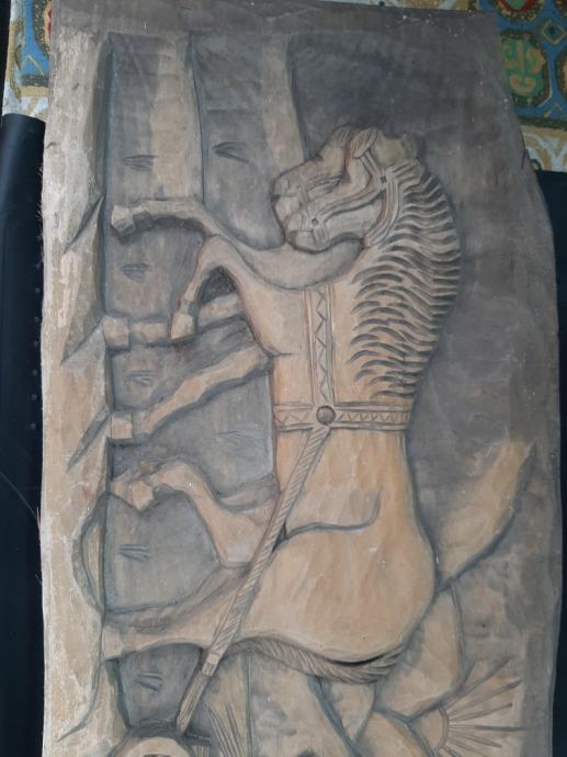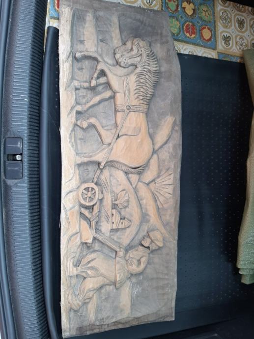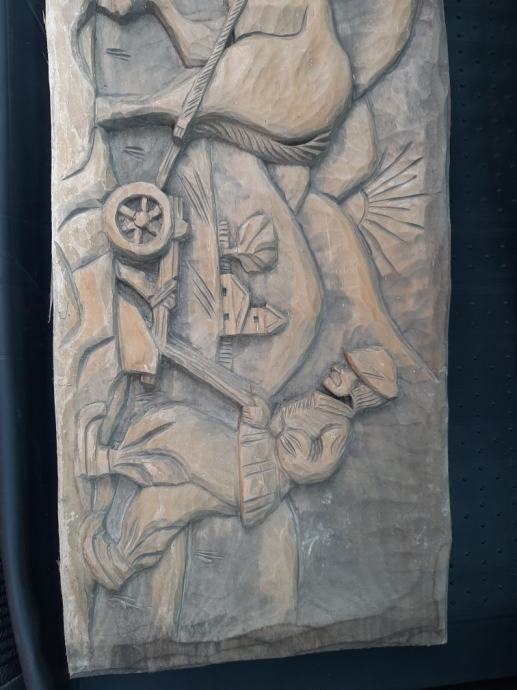 Potpuno ispravna i bez lomova ..drvena rezbarija koja predstavlja konje i seljaka kako obraduje zemlju..rucni rad..starina..