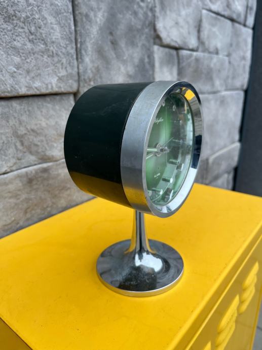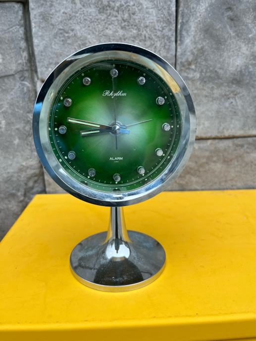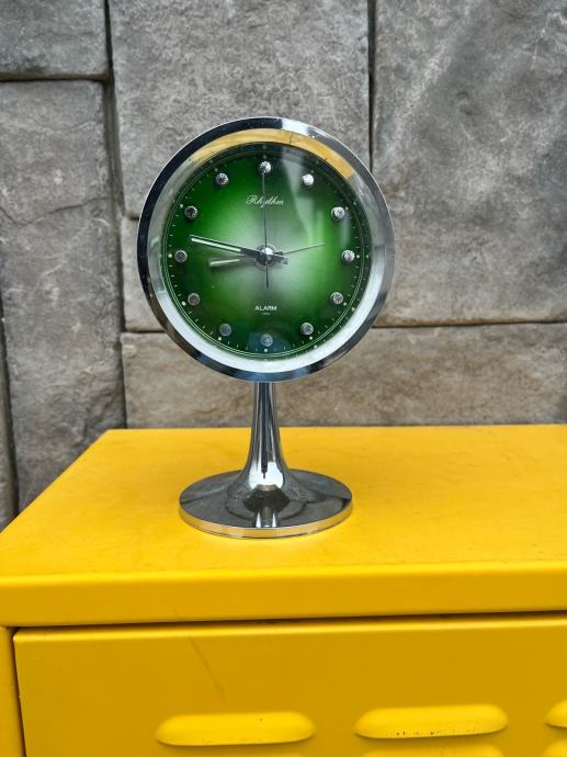 RHYTHM Space Age, japanski stolni sat, model:51111, iz 60/70-ih godina 20. stoljeća, visina: 18,5 cm, širina: 11 cm, dubina: 8 cm, materijal: plastika, krom.
