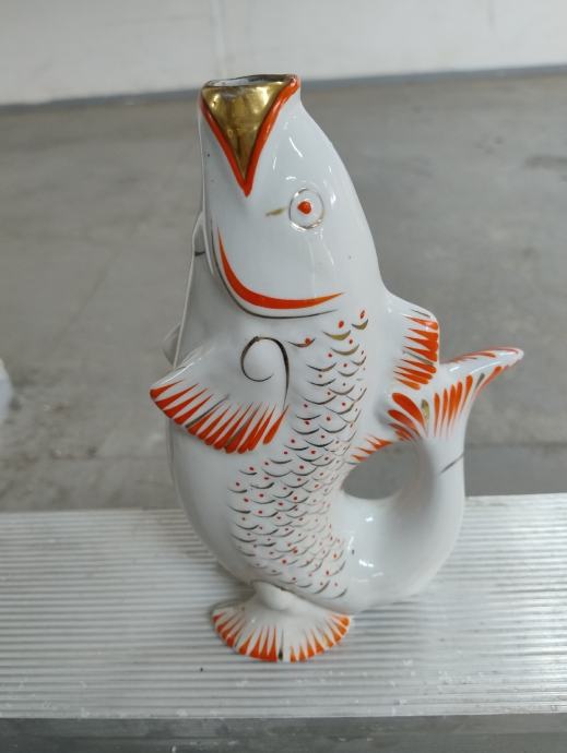 Riba - šaran, vintage dekorativna boca od porculana za vitku. Podrijetlo: Sovjetski Savez. Neoštećeno. Boca se može koristiti kao vaza. Visina: 23,0 cm.