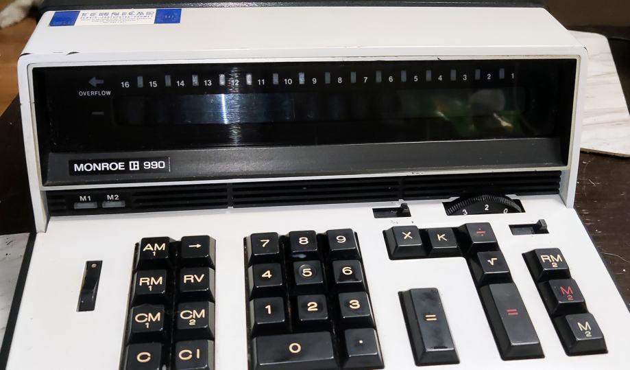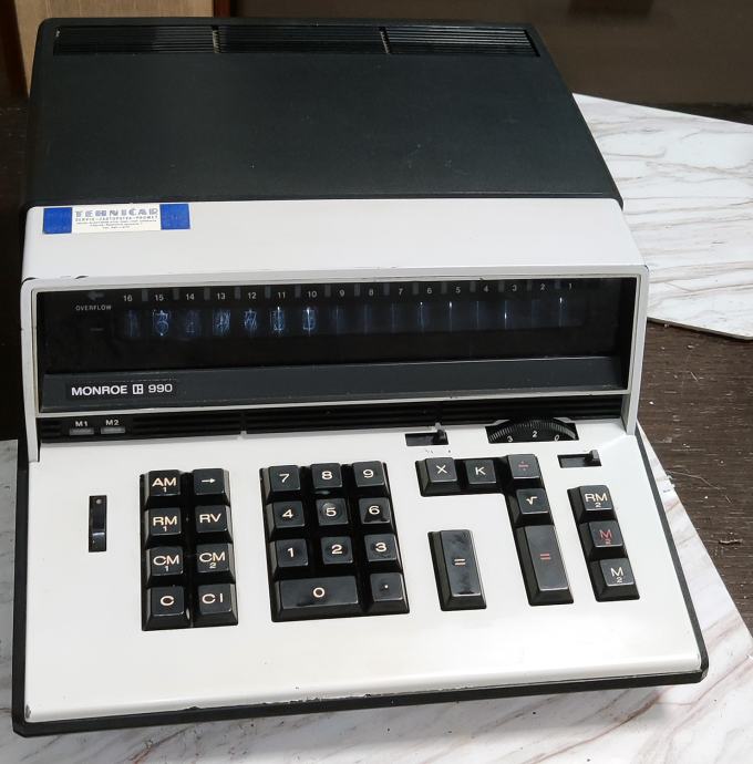 Rijedak retro stolni kalkulator MONROE 990 u kutiji 16 Nixie cijevi