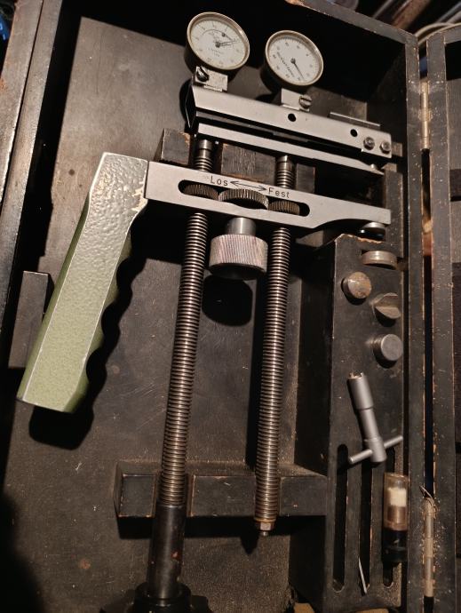 Vintage prijenosni mjerač tvrdoće iz sredine prošlog stoljeća.Koristi se u strojarstvu,obradi metala i kontroli kvalitete(nakon kaljenja)Tvrtka Karl Franjo,njemački proizvođač mjerila itd
