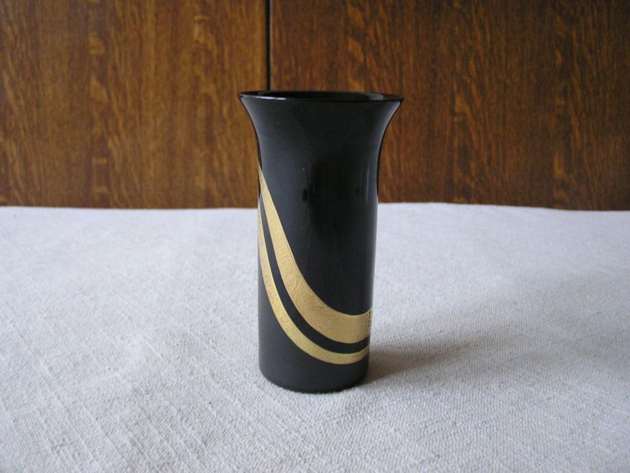 Mala crna vazica rukom ukrašena sa pozlatom. Fini njemački Rosenthal porculan (Rosenthal studio - linie) iz 1980ih. Dizajn je nazvan "Arundo", a dizajner je Helmut Drexler. Vazica je u odličnom stanju, kao nova, dolazi s originalnom kutijom.