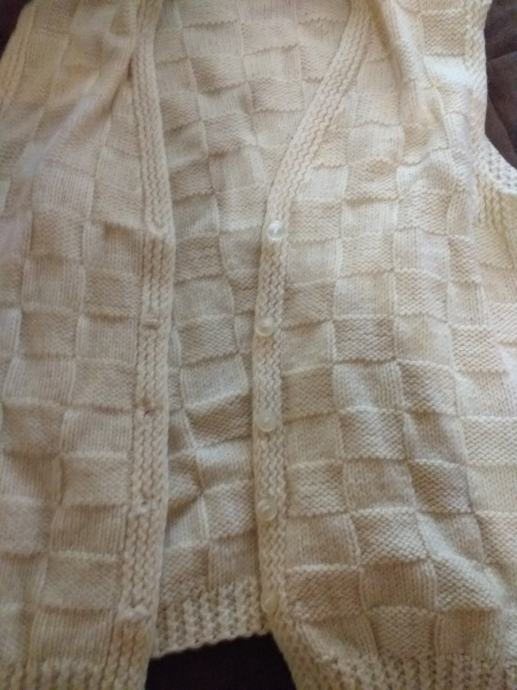 Prodajem 4 razlicita, rucno pletena prsluka, od prirodne vune, 3 su u prirodnoj boji vune, jedan je u smedjoj boji, bojana vuna. Izuzetno su očuvani, kao novo, poklon, gotovo nenošeno.