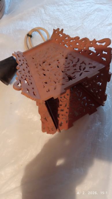 Prodajem visilica svjetiljku istočnjačkog stila, manja s grlom E14, sjenilo je od rezbarenog drveta