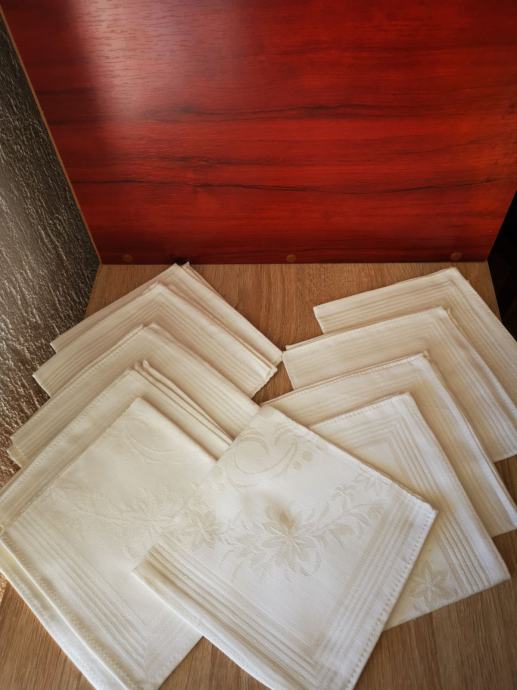 Salvete damast 10 kom, 33 x 34 cm, njezno krem boje, diskretni atlasni vez,sjajni uzorak, elegancija za vaš stol,kao ubrusi ili podmetaci, novo, nije prano ni upotrebljavano