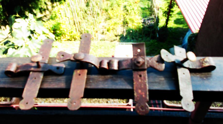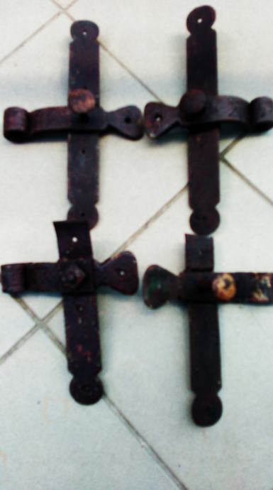 stari kovani šarniri skinuti sa 120 godina starih vratiju. ako vam je za vrata potrebna i brava pogledajte moj oglas broj 19230966 sa starim bravanma sa kljućem