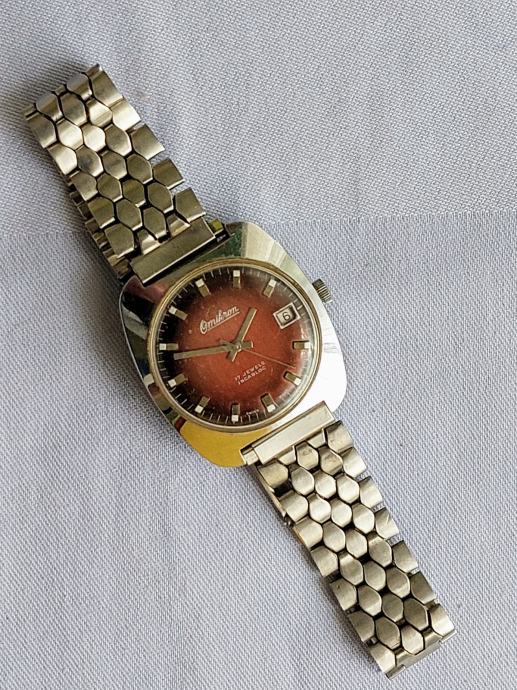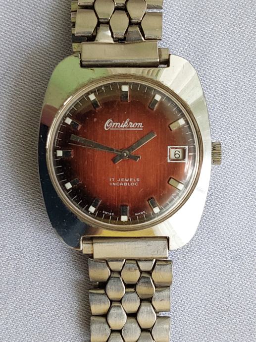 Sat OMIKRON-sa datumom-navijač. Metal remen. 17 rubisa. Radi. Mob