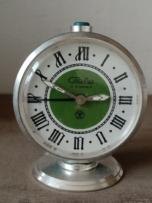 SLAVA . sat budilica , proizvodnja SSSR , malo rabljen , ispravan , potreban manji servi i podmazivanje zbog dugog stajanja .