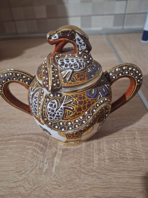 Vitage japanska posuda za šecer sa poklopcem sa motivom zmaja.