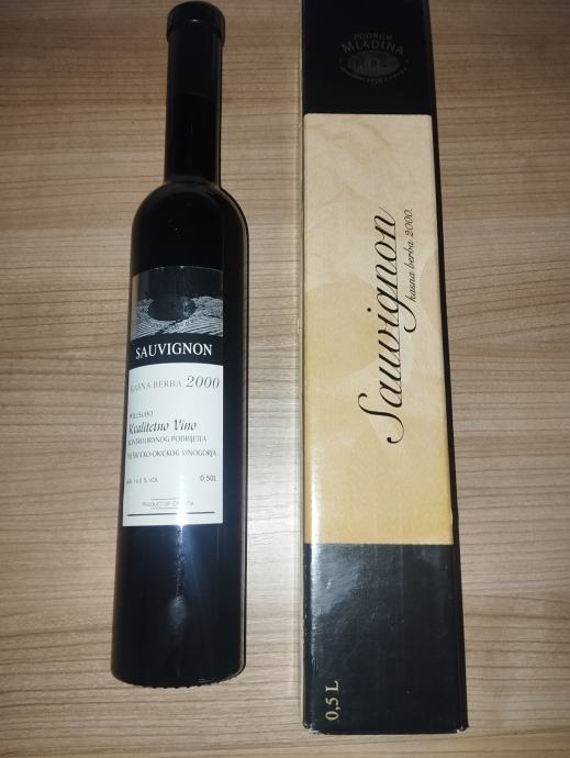 Prodajem bocu u orginal kutiji neotvorenu odlično očuvanu kasna berba iz 2000godine pakiranu 0.5lit.Boca se nalazila u staroj konobi i odličnog je izgleda.