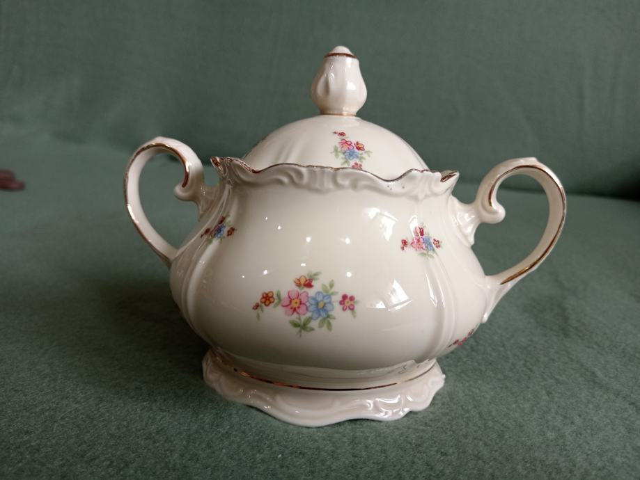 stara porculanska šećernica visina s poklopcem 12 cm, od ručke do ručke 16 cm