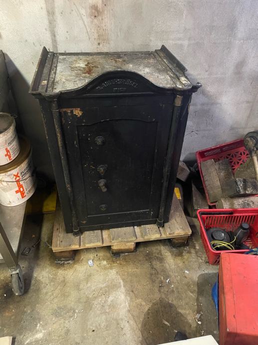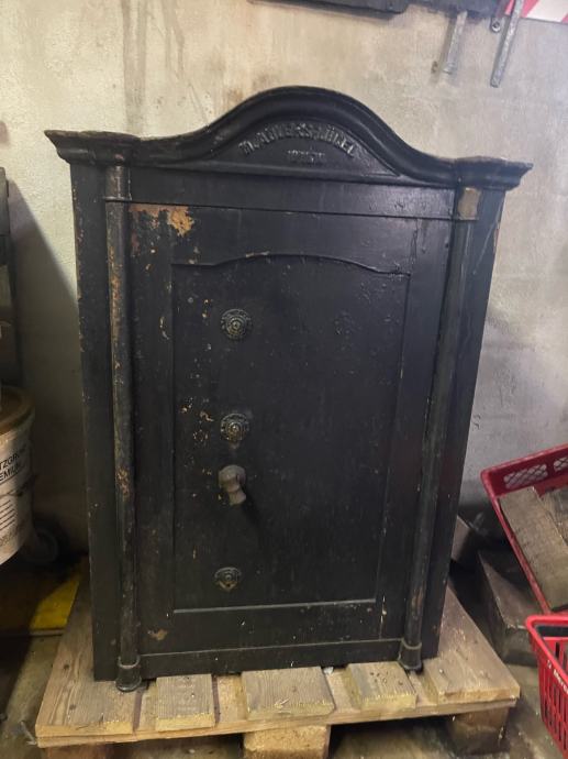 Stari sef ispravan. Sve original. Ima i postolje od drveta. Dimenzije 100 x 50 cm postolje 40 cm.