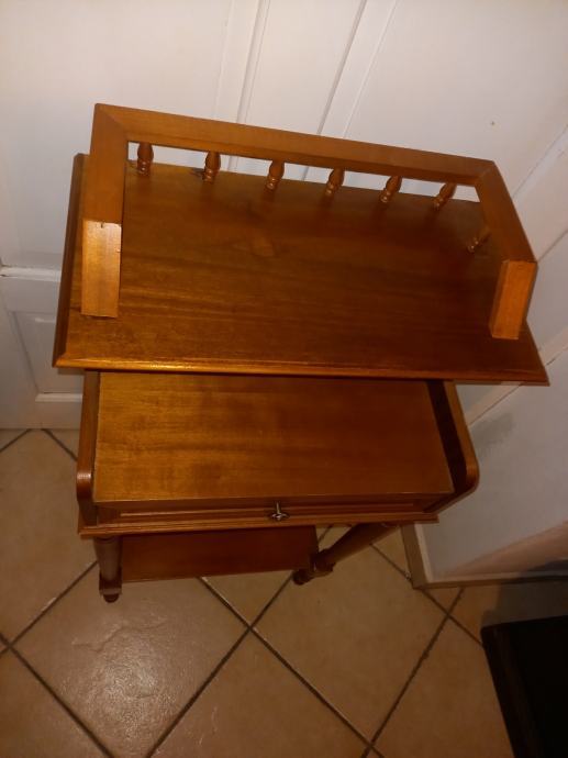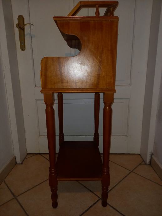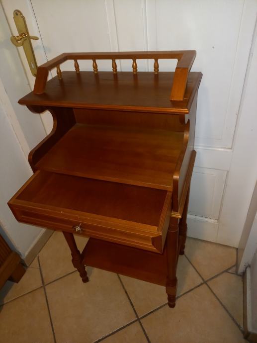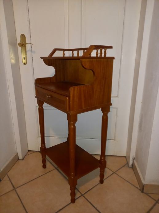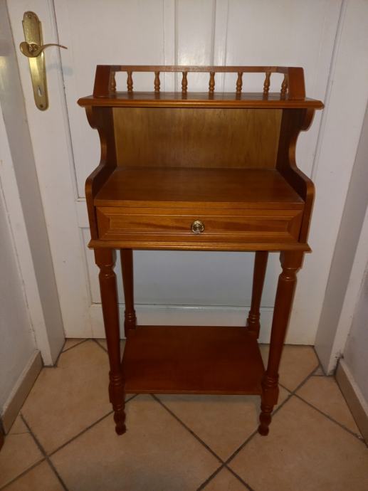 Prodajem mali, dobro očuvan sekretar s ladicom na izvlačenje i policama za odlaganje. Dimenzije 30 cm x 40 cm x visina 90 cm.Tel.040 843 256