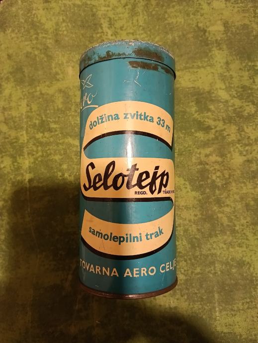 Prodajem staru limenu ambalažu Selotejp, tovarna Aero Celje. Visina 17cm, stanje vidljivo na slikama. Plačanje na račun ili gotovina.