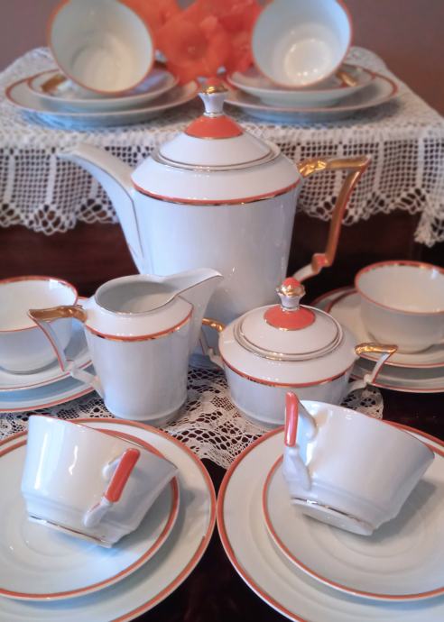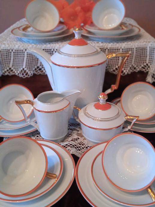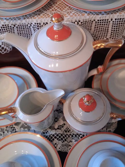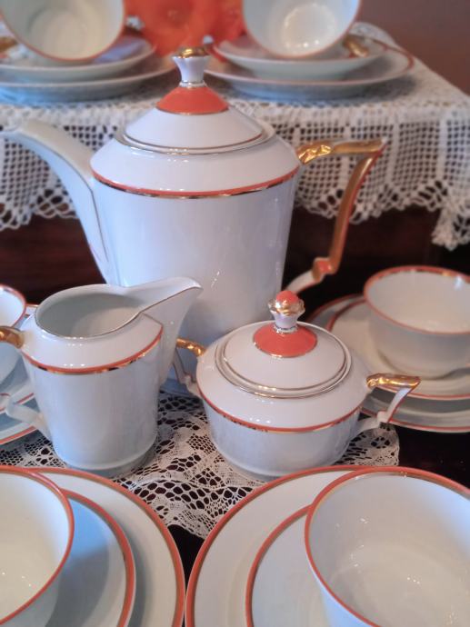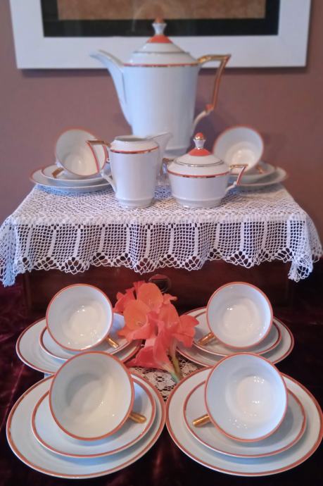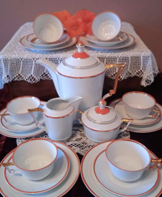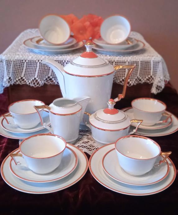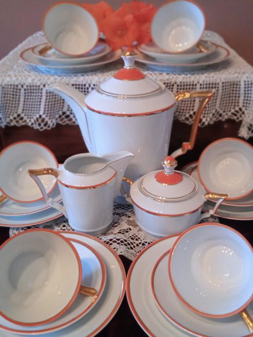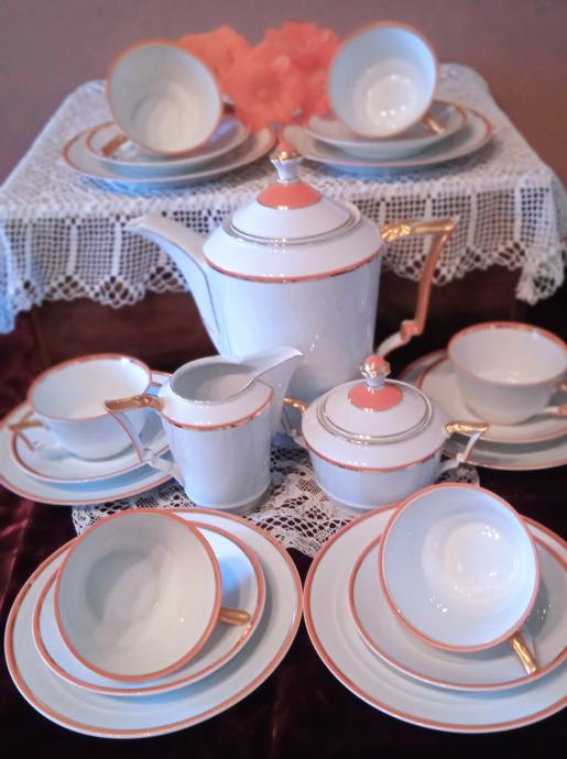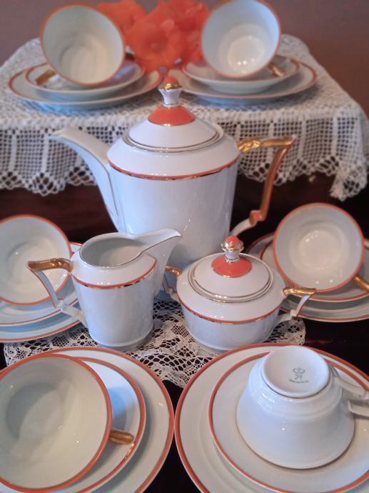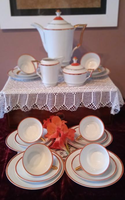 Predivan Royal Bavaria, prozračni tanak porculanski servis za čaj. Stanje besprijekorno, osim što je na ruučki čajnika malo izlizana pozlata . Slikano u visokoj rezoluciji na zadnjoj slici.