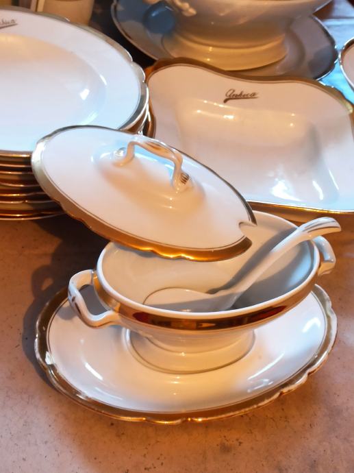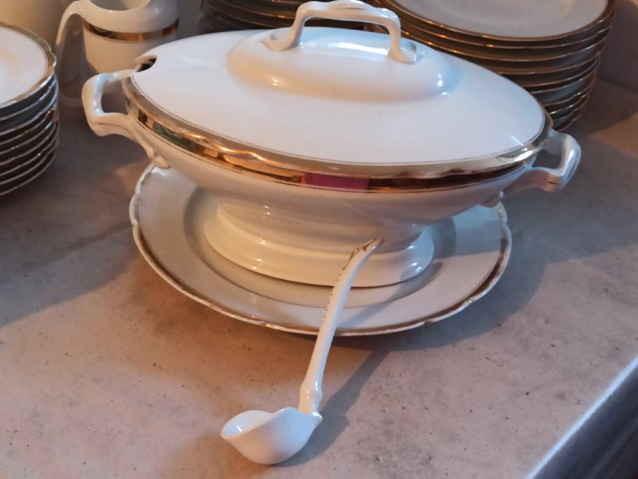 sa velikom zdjelom za juhu sa zaimačom, 2 posude za umake, također sa zaimačama, soljenka, veliki tanjur