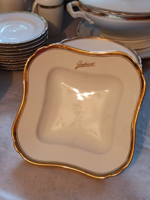 Vintage servis moje bake Ankice koji je dobila za vjenčanje, rađen posebno sa njenim imenom Ankica na svim tanjurima,