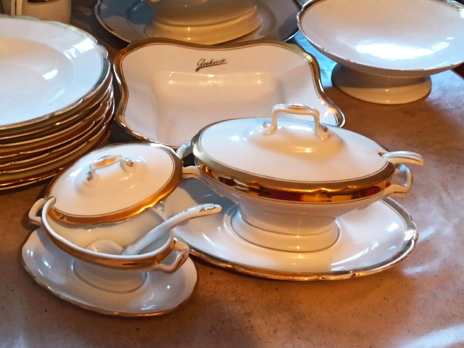 svi rubovi su pozlaćeni.Raritetni servis je "preživio" oba svjetska rata, star je preko 100 godina. Naravno da se vidi da je