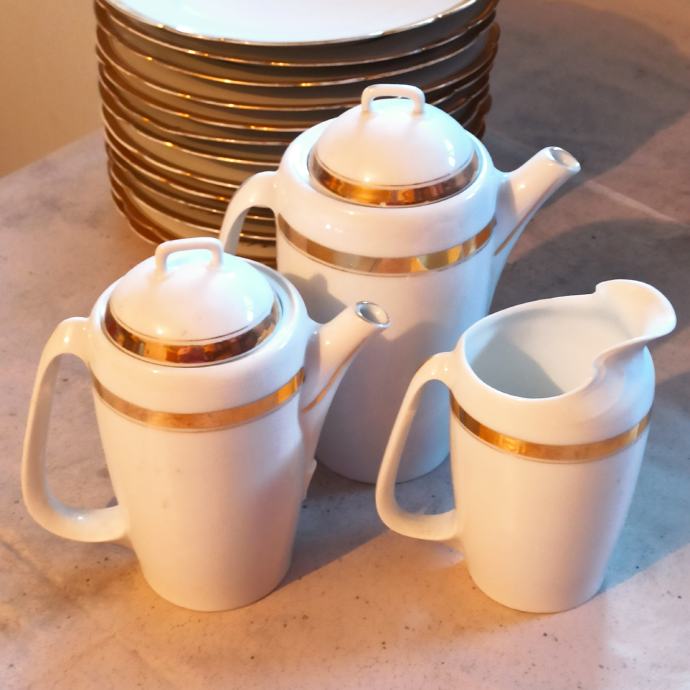 za posluživanje mesnih jela, zdjela za salatu, okrugli poslužavnik za torte, servis za čaj i kavu sa po 5 šalica.