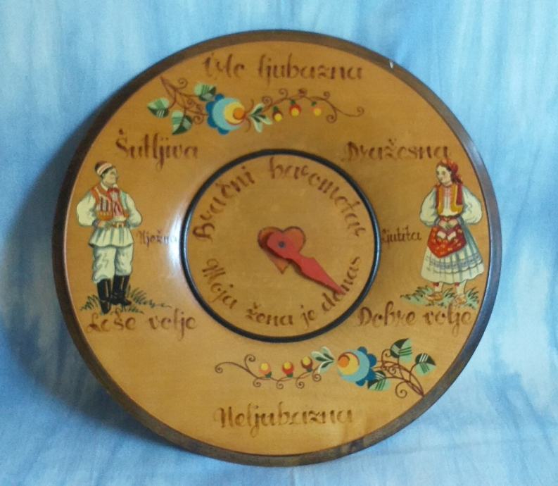 Drveni tanjur promjera 29,5cm, pirografija, obojeno rukom, kao na slikama...