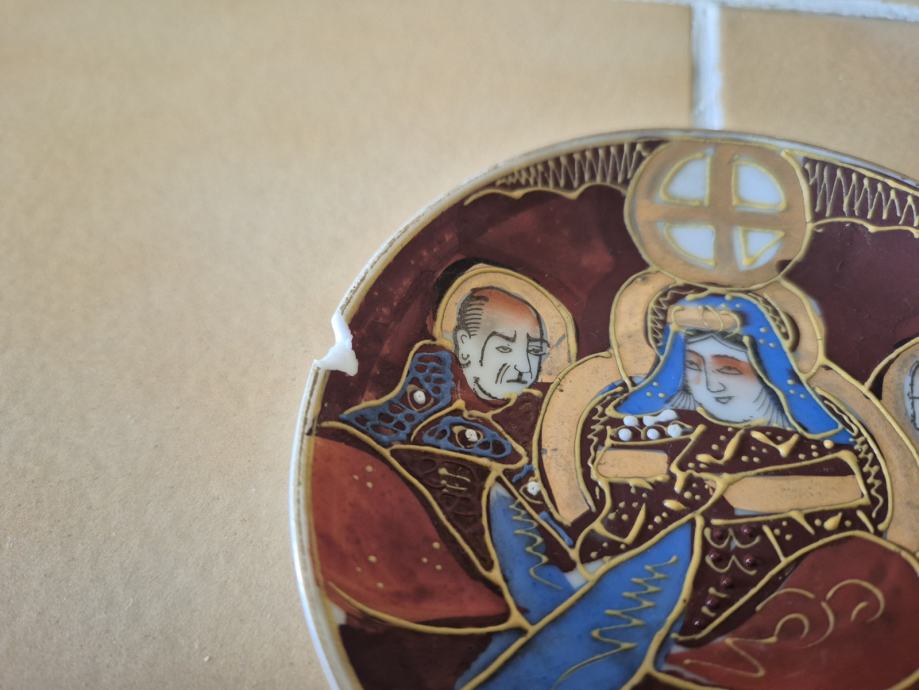 Prodajem set od 3 male porculanske šalice s tanjurićima s bogatim japanskim motivima i pozlatom, idealne za espresso ili kao dekoraciju. Set je stariji/vintage, izrađen od vrlo finog porculana s ručno oslikanim likovima u crveno-zlatnim tonovima. Jedan tanjurić je malo oštećen, što se vidi na fotografijama, dok su ostali dijelovi seta očuvani i pogodni za korištenje ili izlaganje u vitrini. Prodajem sve zajedno kao set
