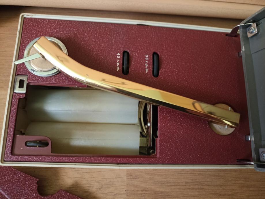 Poluispravan je jer aktualno ne lovi niti jednu radijsku postaju (isključivo krči),a gramofon pokreće gramofonsku ploču no ne reproducira glazbu,greška je ili u samoj ploči ili je bitno vjerojatnije nužna nova igla,a možda su potrebnije i jače baterije.