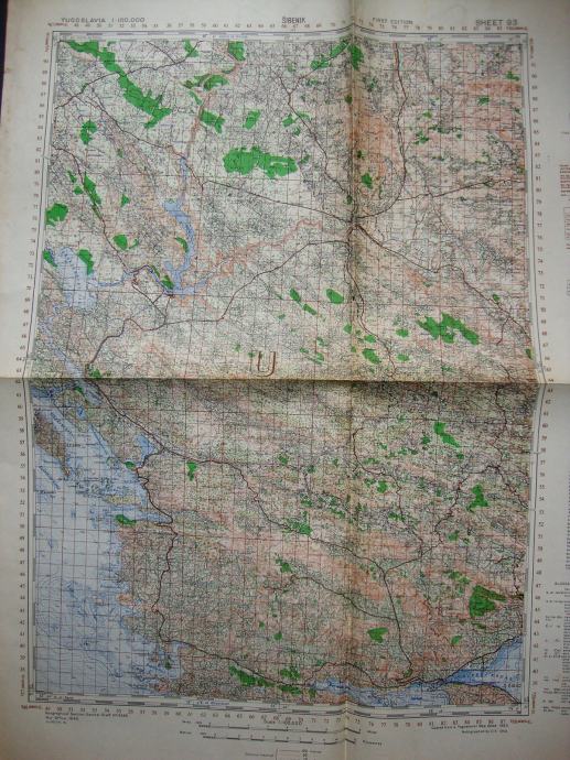 Velika karta Šibenika dim._60,5 cm x 76 cm -stanje izvrsno