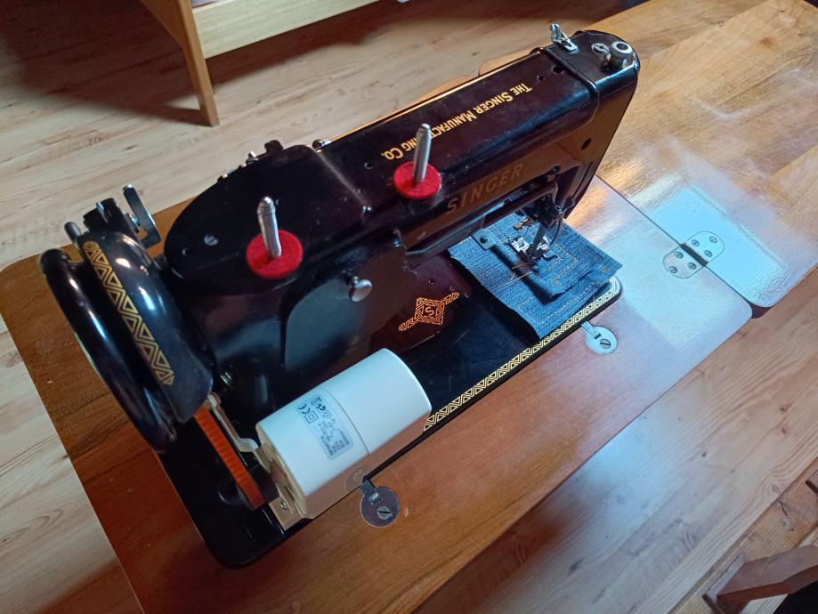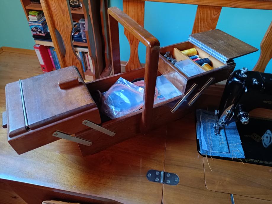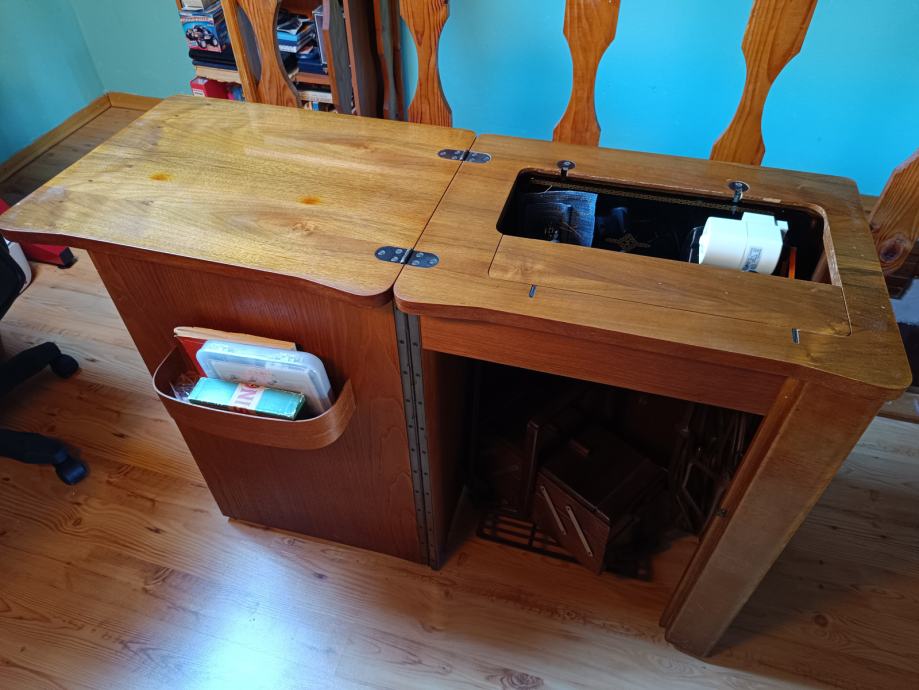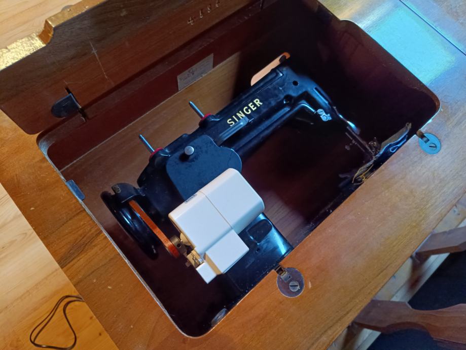 Šivaća mašina Singer 306M (serijski broj MB399199) sa pripadajućim ormarićem.