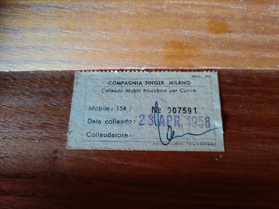 Mašina je proizvedena u tvornici Singer u Monzi (Italija) između 1954. i 1962.