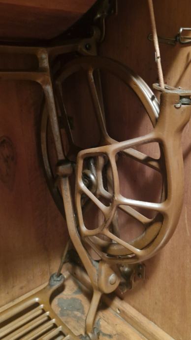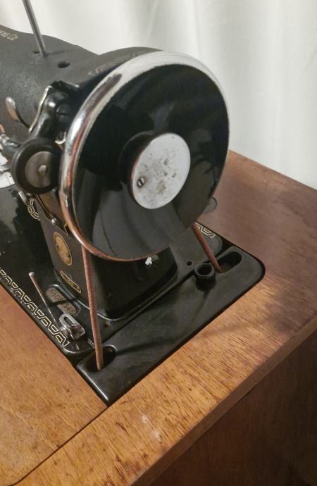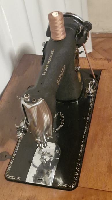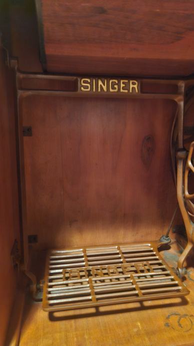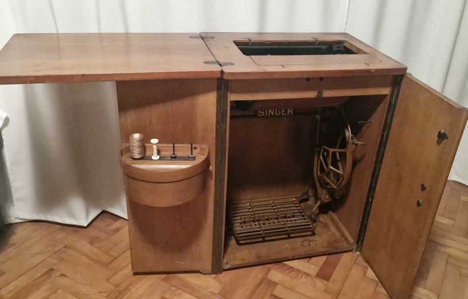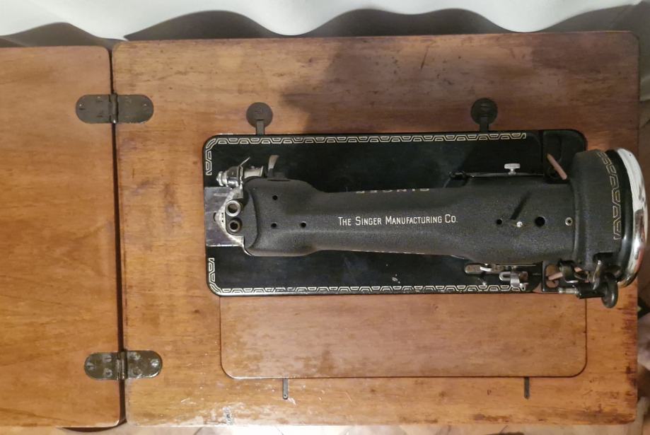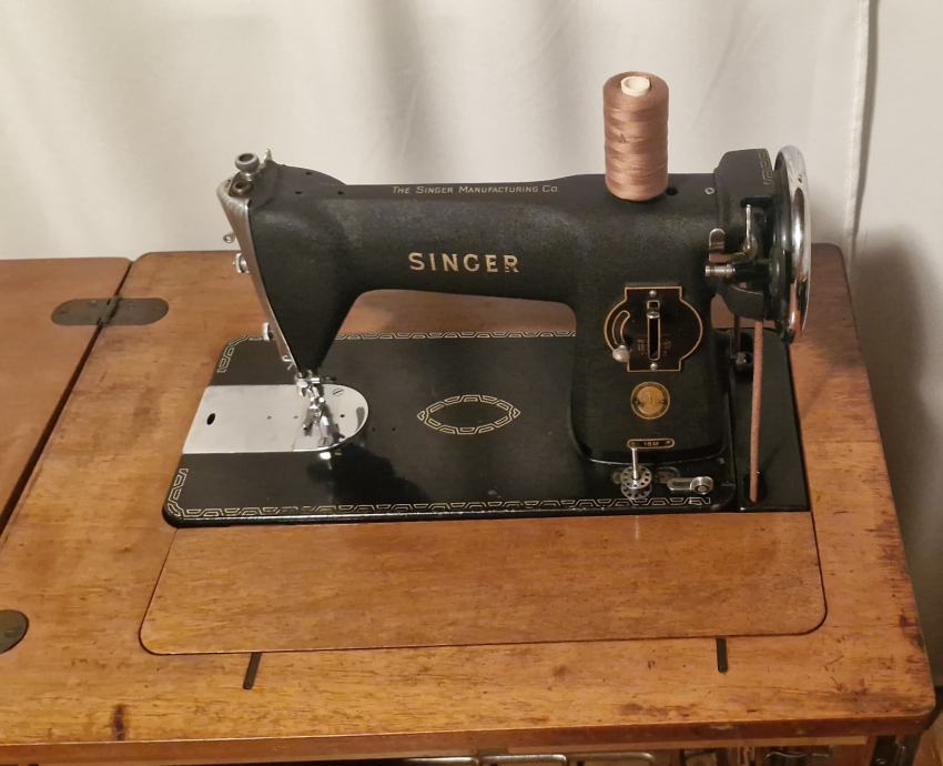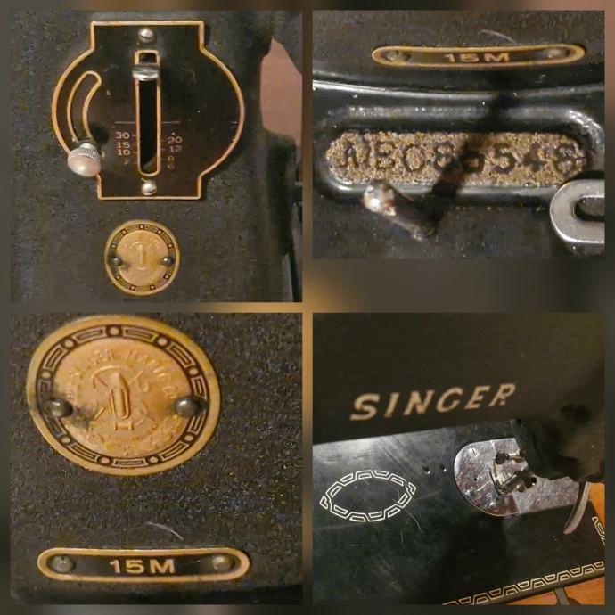 Šivača mašina Singer 15M — jedan od najpoznatijih i najpouzdanijih modela ikad proizvedenih od strane Singer Manufacturing Co., na osnovu žiga i model oznake. Serijski broj N806548 ukazuje da je izrađena oko 1921. godine, najvjerojatnije u Singer radionici u Škotskoj (Clydebank), koja je tada opskrbljivala cijelu Europu.
