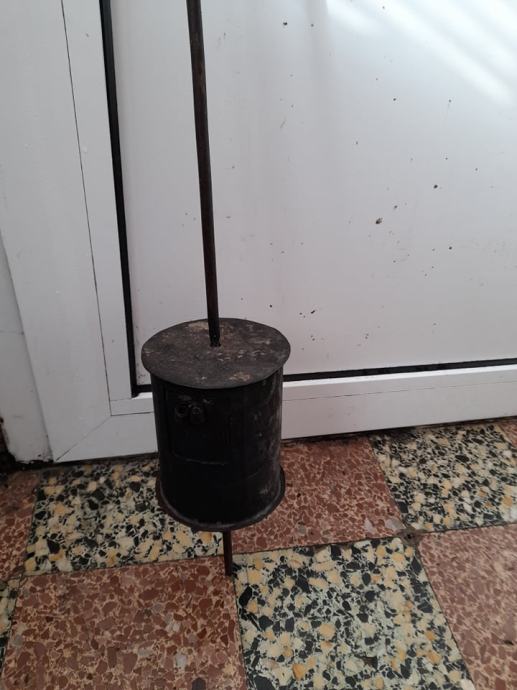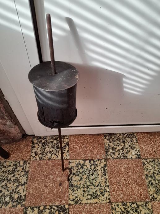 materijal lim i željezo, sve skupa 75 cm dužine, mlinac za pečenje kave dužina 13,5 cm, promjer 11,5 cm, vidi slike