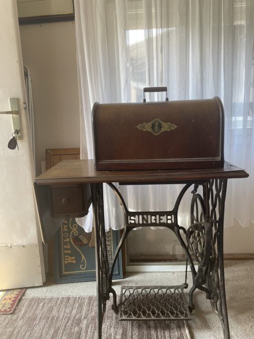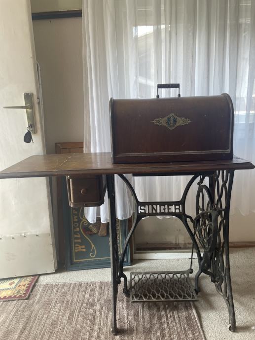 Prodaje se šivaća mašina Singer sa stolom, postoljem i poklopcem, stara 150 godina.