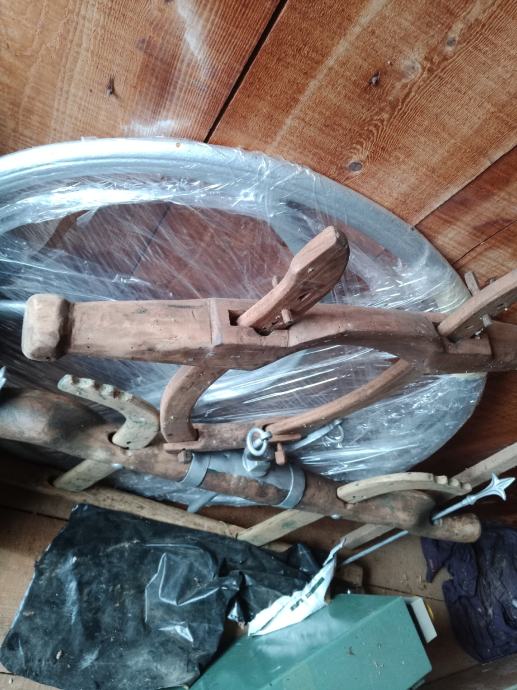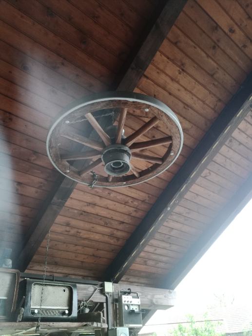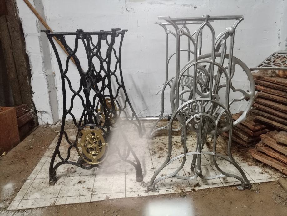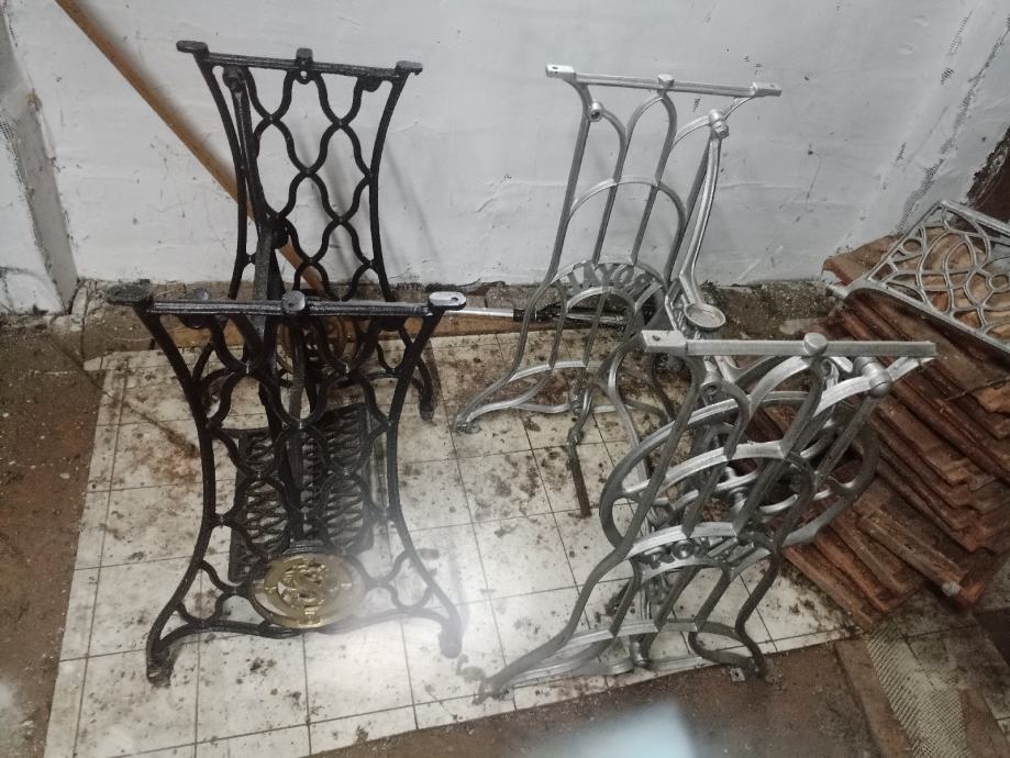 Pjeskareno, lakirano. Crno postolje 350 eura, sivo 250 , uređeni drveni kotač 300 eura, kovački škripac 70 eura.