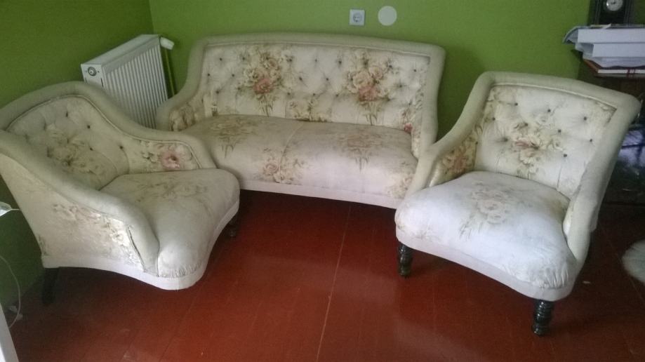 Prodajem staru ( oko 80 godina) očuvanu sjedeću garnituru iz jedne vile u Lovranu, koja se sastoji od dvosjeda i dvije fotelje.