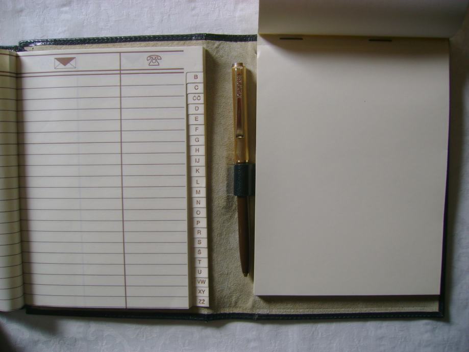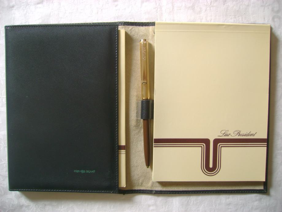 Slavija Lloyd Lux President - etui sa telefonskim adresarom, blokom za pisanje i Rexpen kemijskom olovkom (dugo stoji, treba novi uložak), sklopljen 14 x 18 cm, potpuno nov, nekorišten - stanje je vidljivo na slikama.