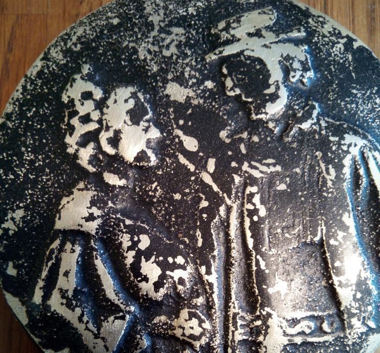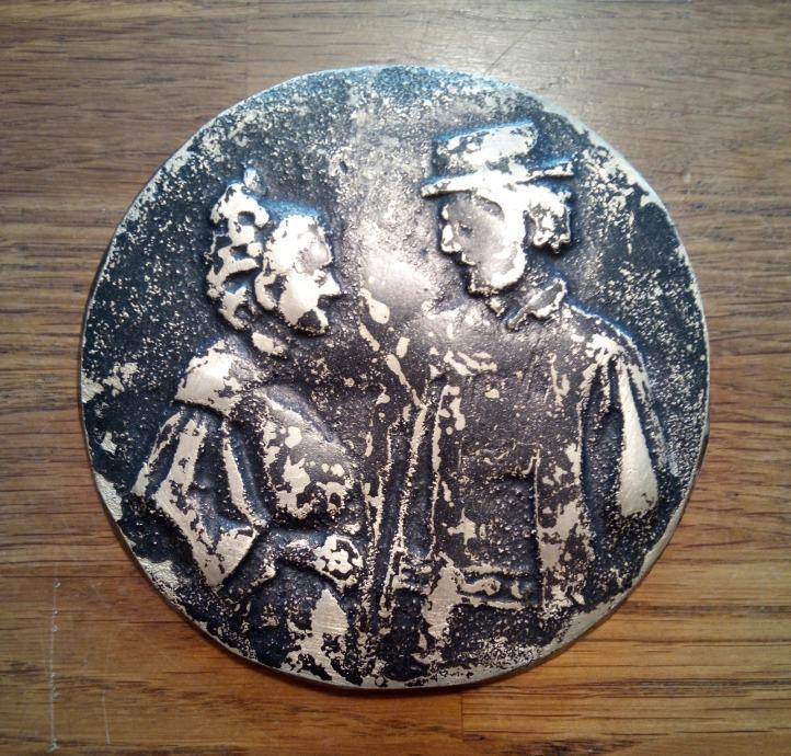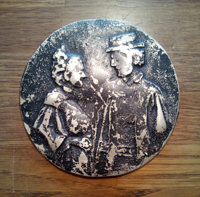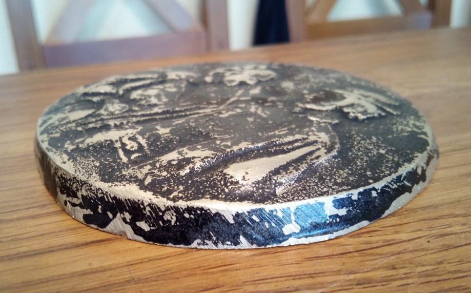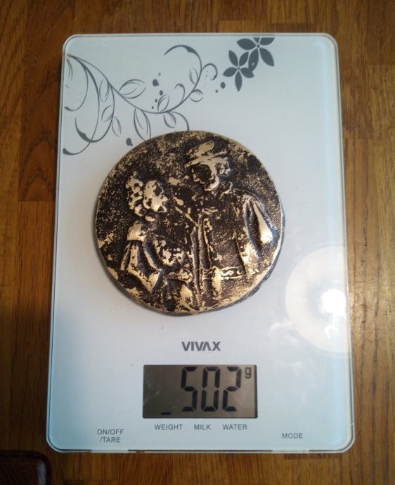Promjera 10cm te debljine 0.7cm,evidentno velike starosti,nečišćena te se prodaje u nađenom stanju-najvjerojatnije bronca.Prekrasan unikatan stari predmet.-(slanje nakon uplate predmeta na račun)