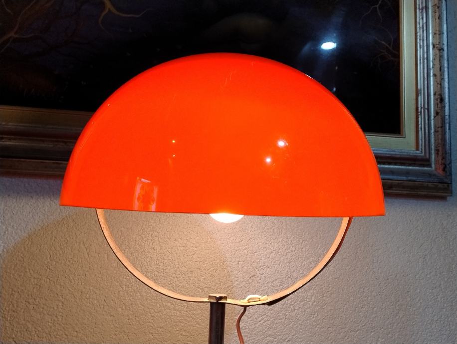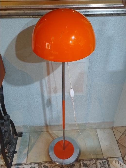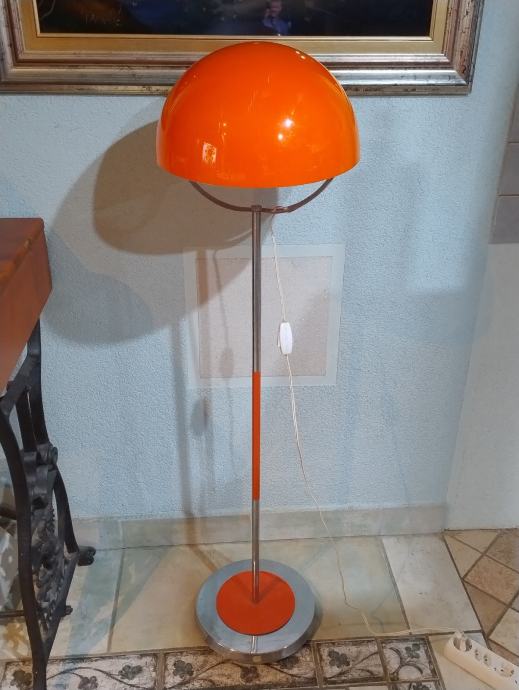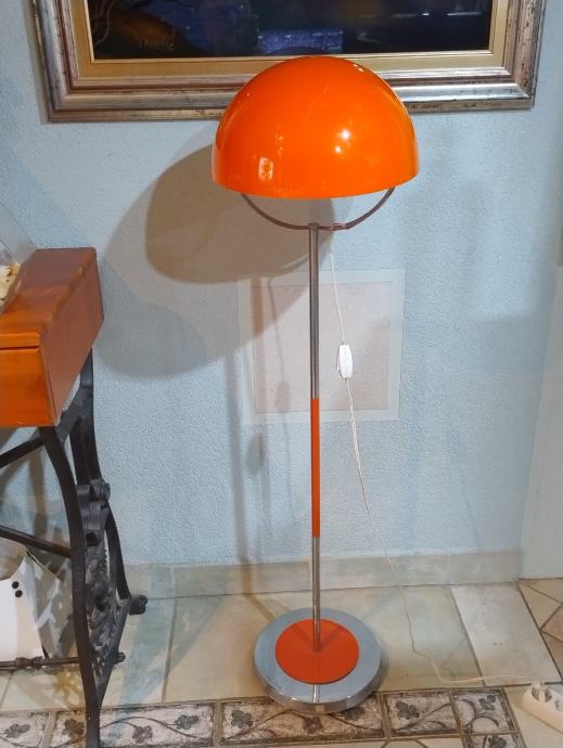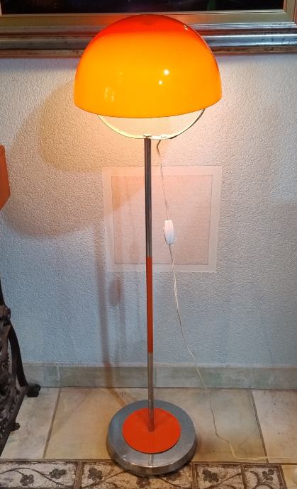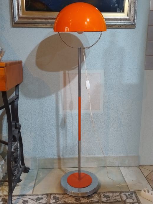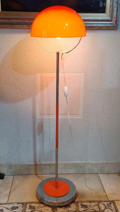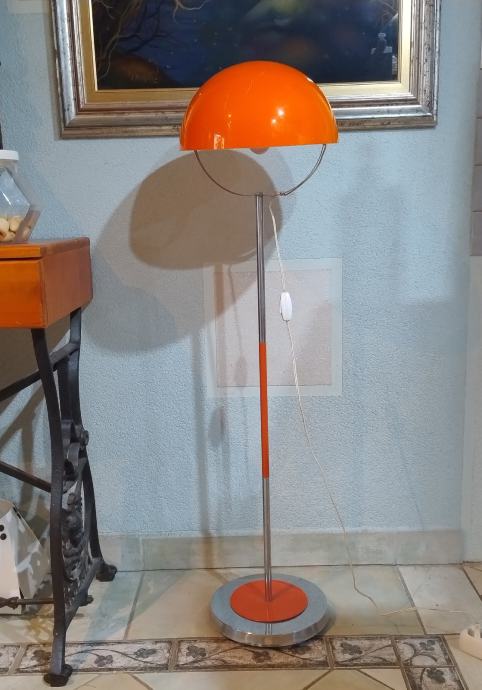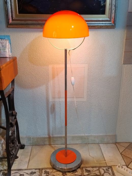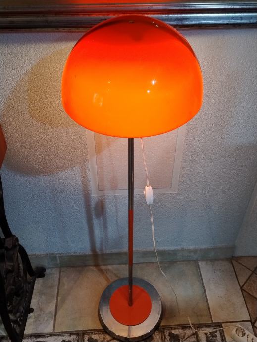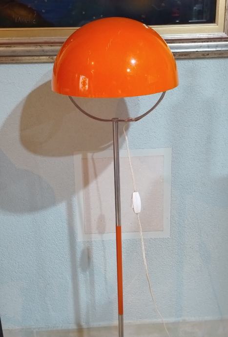 Space age podna svjetiljka sa sjenilom od narančastog plexiglasa iz 1970-tih godina. Proizvođač:RAL, Leskovac.