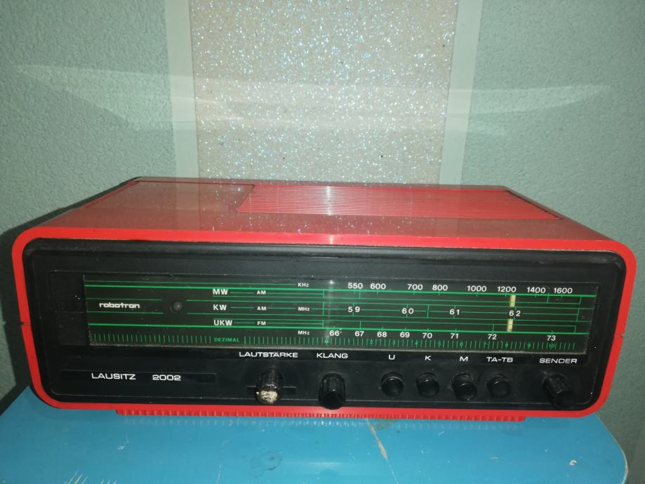 Radio Lausitz 2002 CCIR, proizvođač: Robotron-Elektronik Hoyerswerda, VEB; Hoyerswerda (DDR), god. proizvodnje: od 1980.-1984.g., u stilu space age, Dimenzije (WHD)