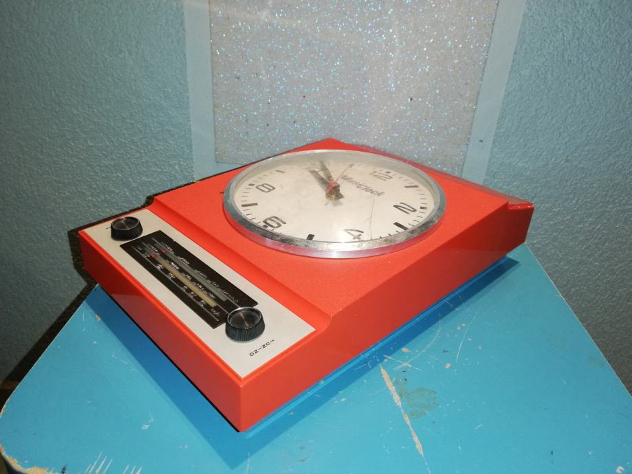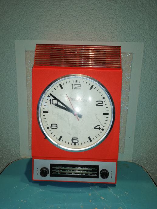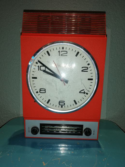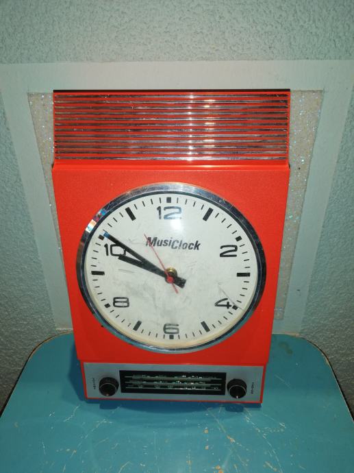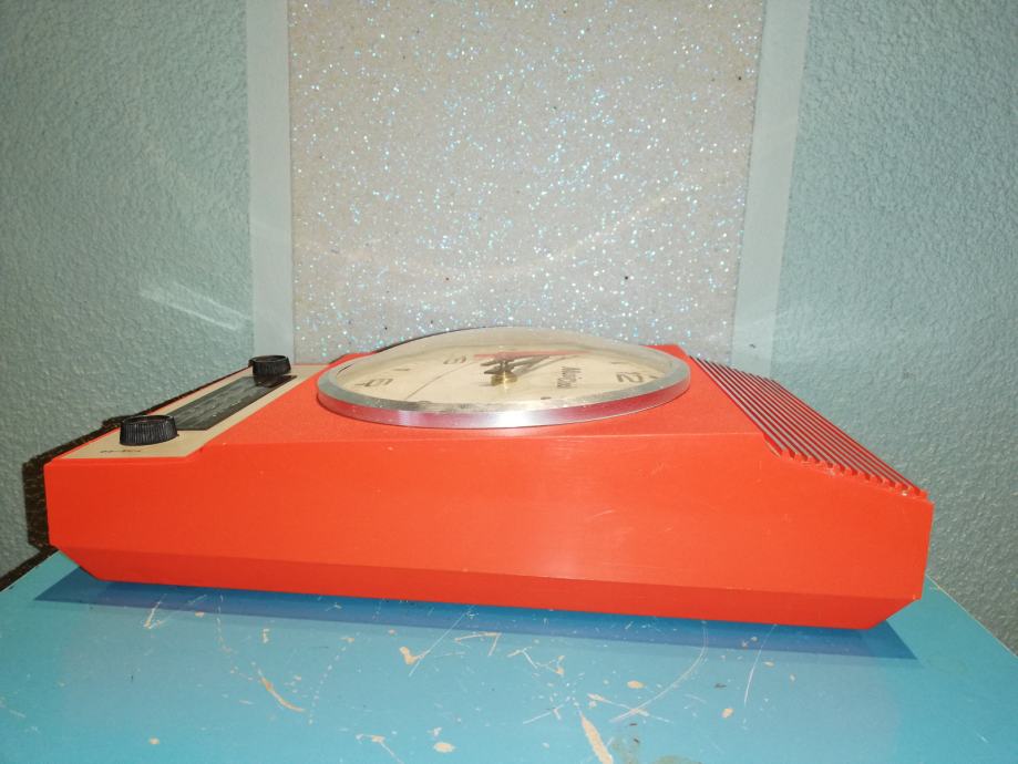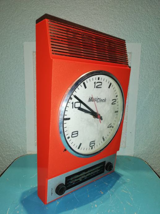 Space age zidni sat - radio Musiclock iz 1970-tih. U funkciji. Nedostaje poklopac za baterije.