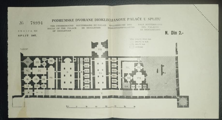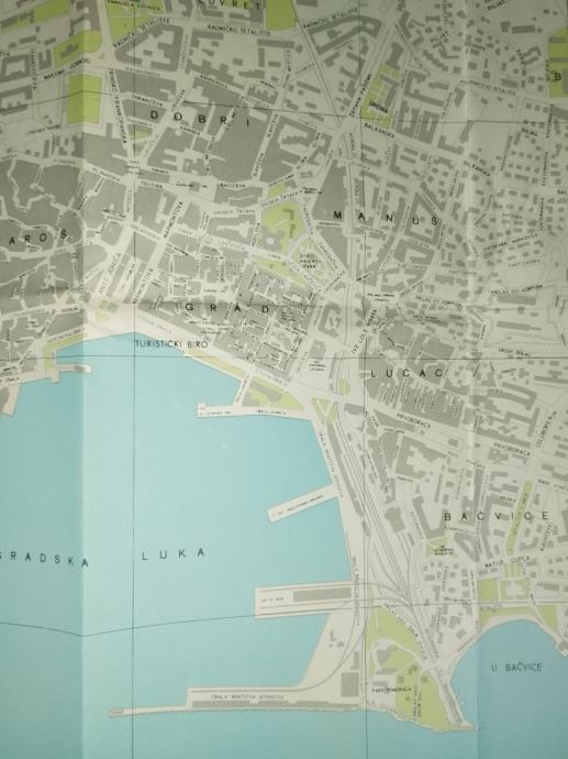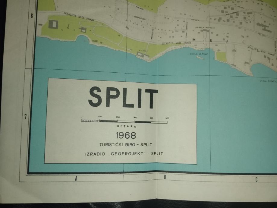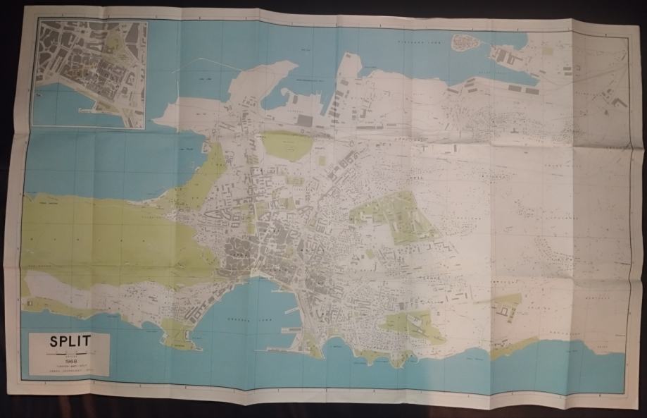Karta grada Splita iz 1968.g. (cca 100x60cm) plus dva kataloga o Dioklecijanovoj palači (1965 i 1966 godina).