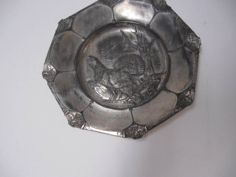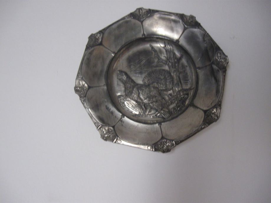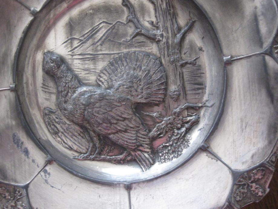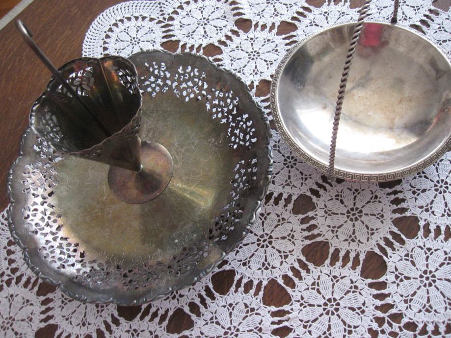 srebrena zdjela, tanjur za zid, stalak za salvete i košarica s pozlačenim rubom