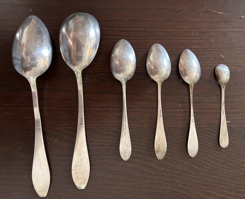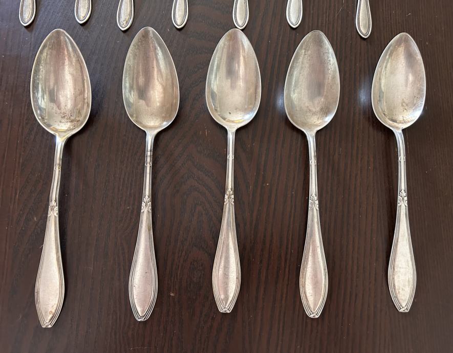 Prodajem srebrni pribor za jelo, udio srebra 80%, težina svega zajedno je 750 grama.