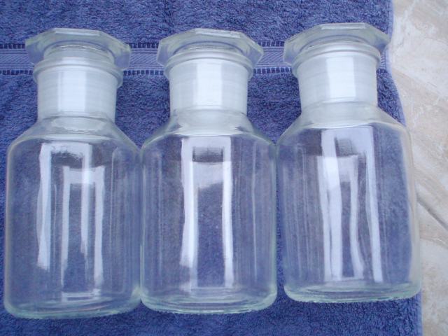 3 staklene pikse sa čepom,iz starog laboratorija, cijele i neoštećene, prodaju se samo u kompletu