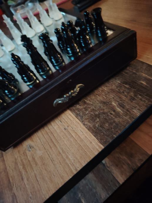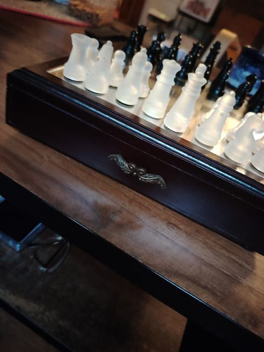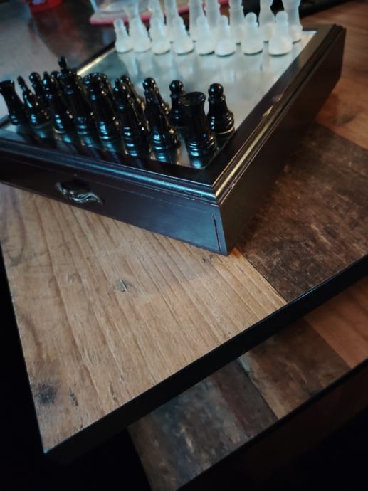 Stakleni šahovski komplet s drvenom kutijom