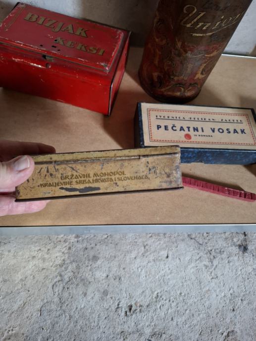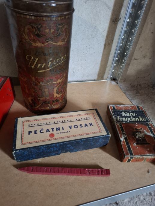 Stara ambalaža.Pelikan pečatni vosak je kartonska,ostalo limeno.Cijena za svih 6 je kako piše fixno 100 eura.Pojedinačno 30 eura.