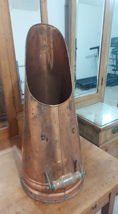 Stara bakrena posuda za ugalj, žar (coal scuttle).