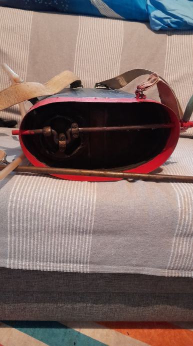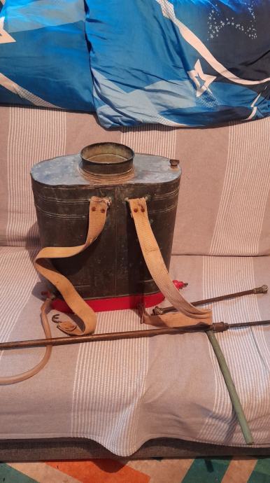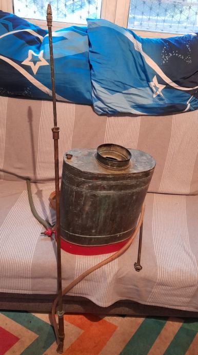 prskalica za lozu na pumpanje bakrena, u ispravnom stanju, fali čep, ali može se radit i bez njega, sa svim dodacima- velika i mala prskalica, vidi slike